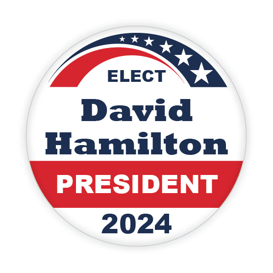 3 inch Popular Campaign Style Design customizable for you! Taking all the guess work out of what looks good - this is it! Americana with the red, white and blue design with the bonus of stars. This full color button comes with a safety-pin back included in your pricing, you won't be disappointed with the quality of 3" inch Semi-Custom Button by Buttonworks.