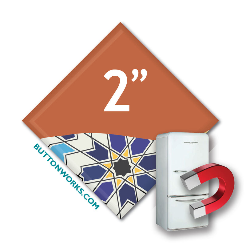 Our Custom 2-Inch Diamond Magnets are a dynamic way to showcase your message with confidence! This bold yet striking magnet size is a premium choice for trade shows, elementary schools, and memorable promotional giveaways. With vibrant Full Color printing and the reliable magnet attachment included in your pricing, you'll be thrilled with the exceptional quality of these 2-inch diamond Custom Magnets by Buttonworks.